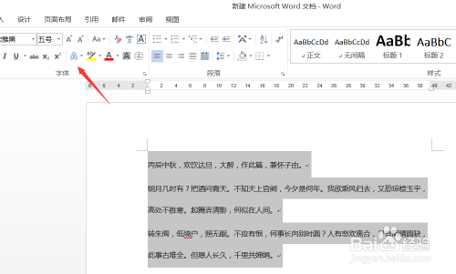 输入好后,我们用鼠标选中需要设置文字结果的内容,然后点击图中箭头所示的A字符号,参考下图