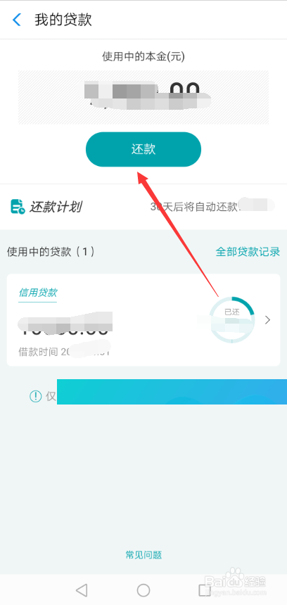 进入网商贷我的贷条目界面后,直接点击【还条目】按钮,如下图所示。