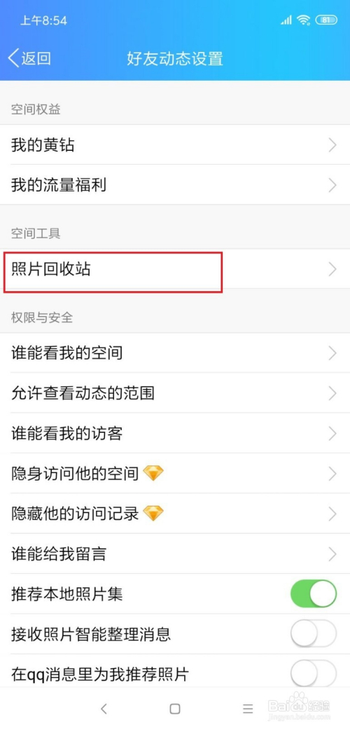 若是我们需要还原相册,然后我们就。然后我们就选择相册右上角的选项。然后再点击下面的还原。接待之后的相册在我们空间里面就可以看到了。