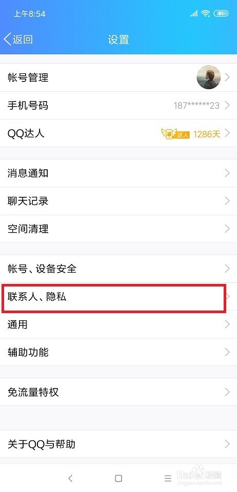 在设置里面,我们可以看到有一个联系人,隐私的选项。我们点进去这一个选项。