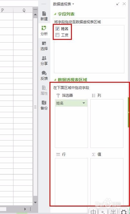 第七步:按照本身的需要将字段拖动至下方的数据透视表区域,单位格中就会形当作对应的表格。