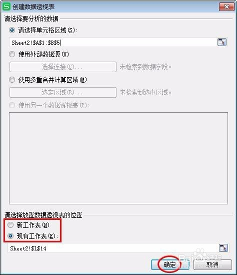第五步:按照本身的需要选择放置数据透视表的位置,单击“确定”按钮。