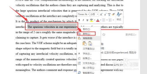 然后我们进入word,将我们想要翻译的英语单词复制,然后就会呈现翻译的中文。如图所示。