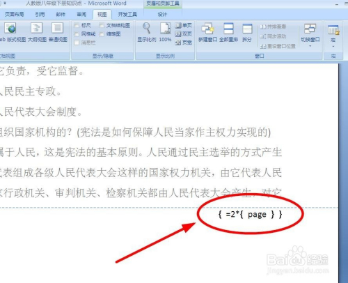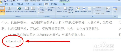 在域符号中输入“=2*{page} -1”。(中心的也是域符号,同样需要利用组合键“Ctrl+F9”)