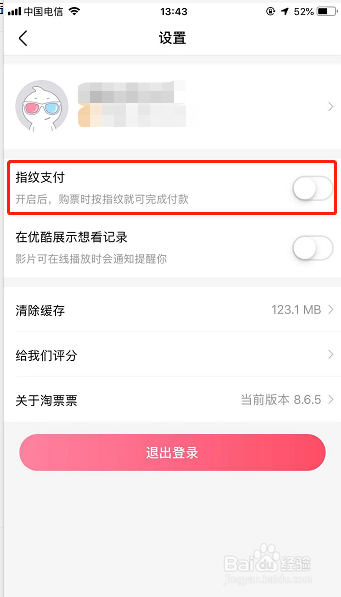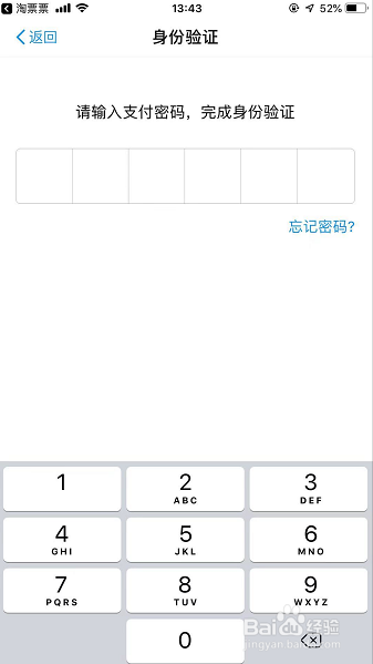 然后输入支付宝的支付密码完当作身份验证,验证完当作后,淘票票的指纹支付功能即被开通!