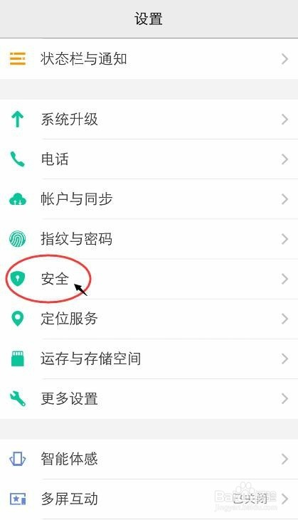 打开手机,选择【设置】 滑动页面,找到【平安】点击打开。