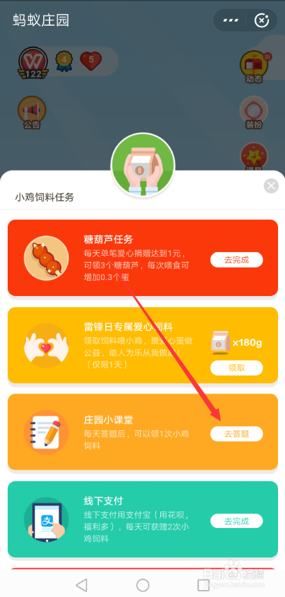 打开的对话框里直接点击庄园小讲堂后面的去答题,如下图所示。