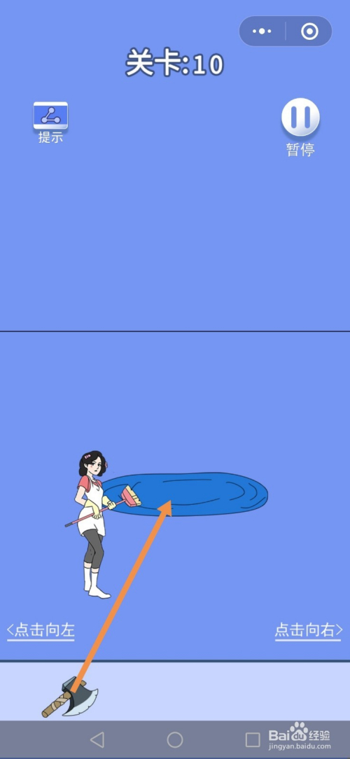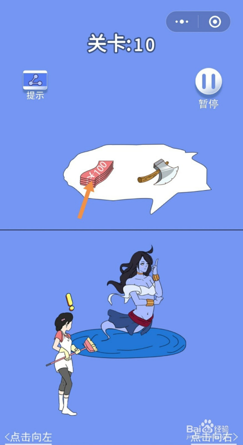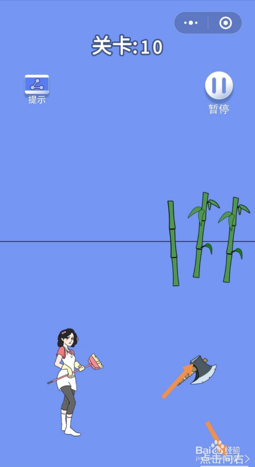 第10关先点击地上的斧头,然后点击点击标的目的右进入右边的房间。
