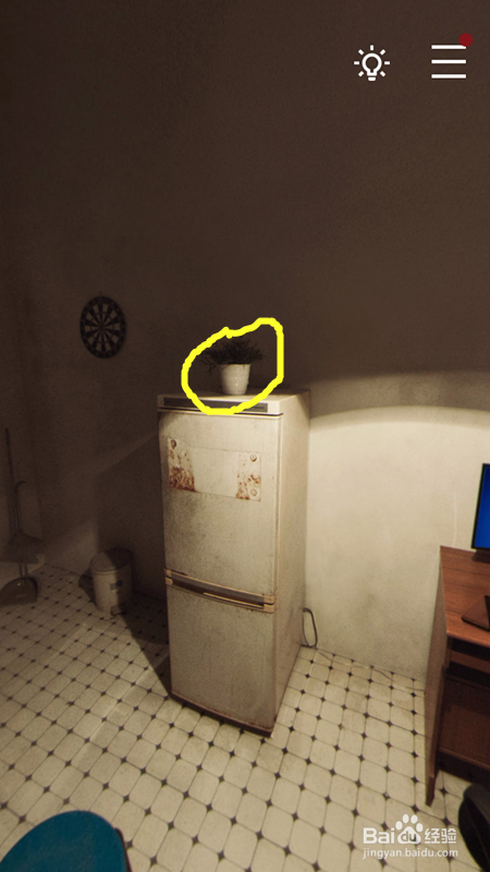 首先我们点击手机上的游戏,进入困兽这章,进入后,我们点击冰箱上的花盆,从花盆上获得了电脑的开秘密码,如下图所示。