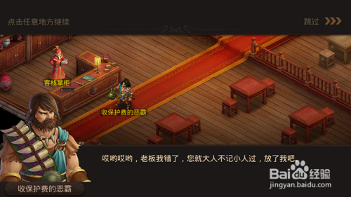 进去我们的客栈今后我们就看见有一个收庇护费的恶霸堵住了我们的客栈门口,如下图所示。