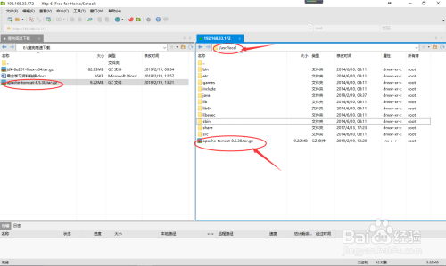 经由过程Xftp 6将安装包上传到Linux办事器的/usr/local目次下,如下图所示: