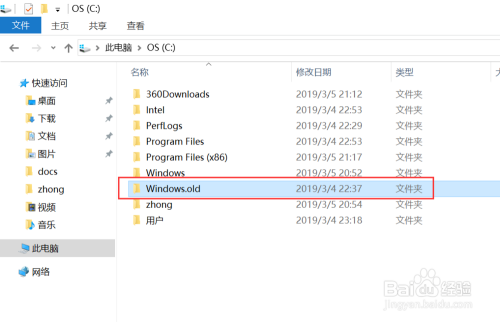 删除完当作后,windows.old文件夹就被删除了。