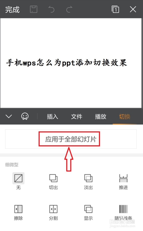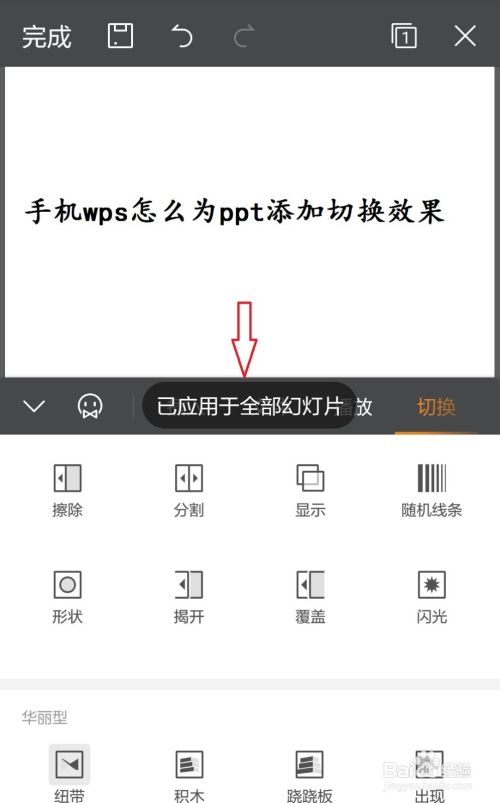 手机wps具备了电脑端的大部门功能,操作起来很便利,那么手机wps怎么为ppt添加切换结果呢?下面就来介绍一下手机wps为ppt添加切换结果的方式,但愿对你有所帮忙。