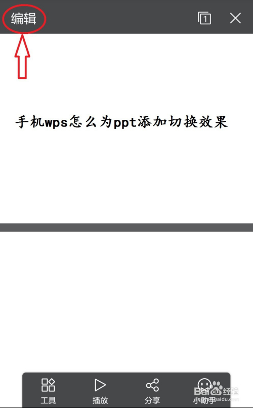第二步:点击左上角“编纂”按钮,进入ppt编纂界面。