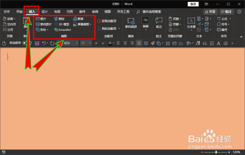 打开word软件,直接进入到word文档中,然后在软件顶部菜单栏找到并点击“插入”菜单,再继续找到插入菜单下的“插图”选项组。