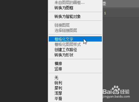 接着右键选择文字图层为栅格化文字