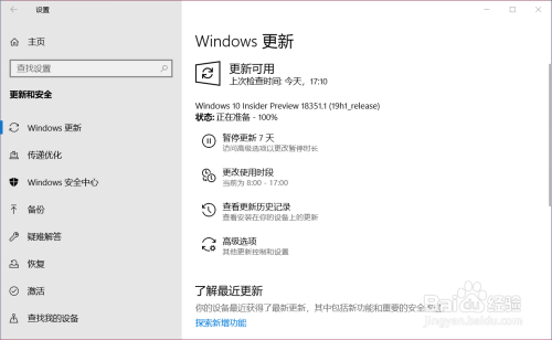 第二步:更新进级Windows 10 Insider Preview 18351.1 (19h1_release)系统