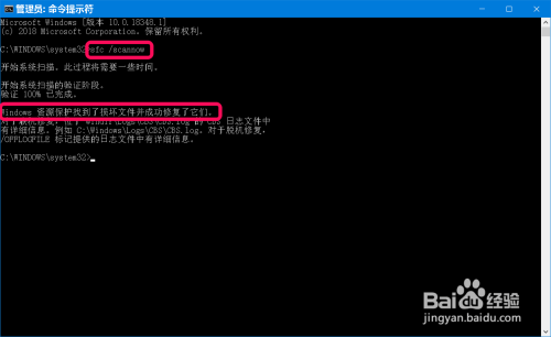 在办理员号令提醒符窗口中执行:sfc /scannow号令,查抄修复系统。