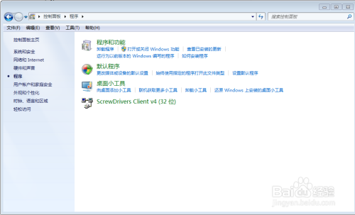 在节制面板中点击“程序”,进入“程序和功能”页面。