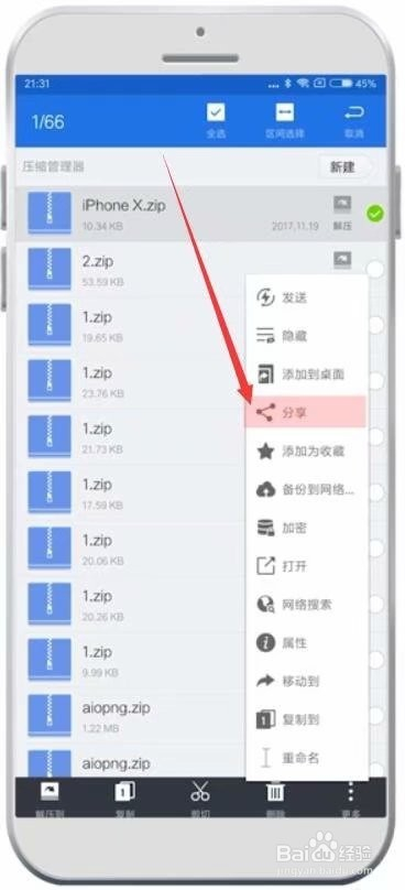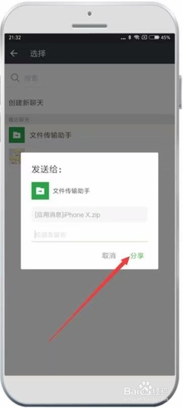 选择老友,点击【分享】;就完当作了将QQ收到的文件转发到微信。