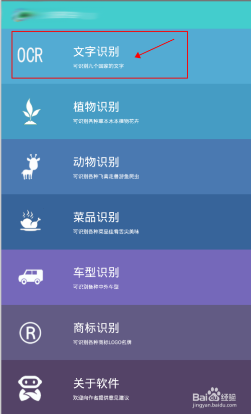 首先大师到百度下载,安装后可以进入以下界面。接下来我们点第一个文字识别。