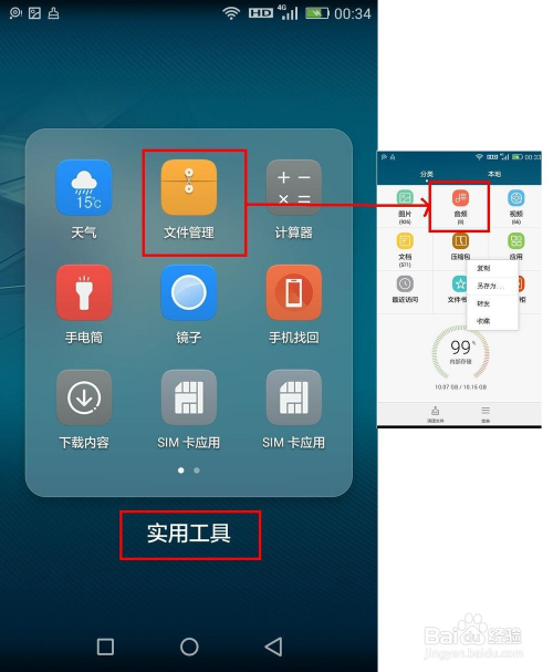 接头,打开手机——点击适用东西——文件办理(分歧手机打开体例分歧,但都是找到文件办理东西)——打开文件办理后,点击音频,就可以看到所有的音频文件了。