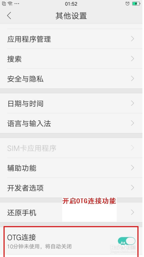 第三种方式就是用OTG线来毗连手机与MP3,然后先在手机那边开启OTG功能,点击设置——其它设置——找到OTG并开启,然后就像步调2和步调3一样把手机的音乐复制到MP3那边。