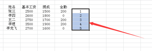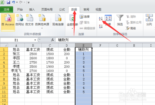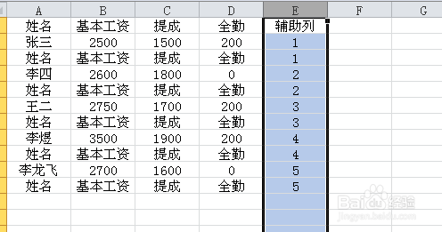 打开表格,看到本身的数据,在数据右边添加一辅助列,为辅助列排序,有几多员工就排序几多号,如下图。