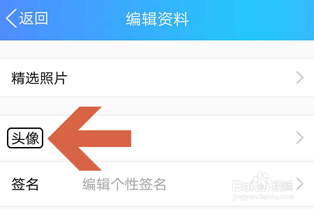 在编纂资料页面中,我们会看到“头像”,点击这一项今后会在屏幕下方弹出图二所示的窗口;