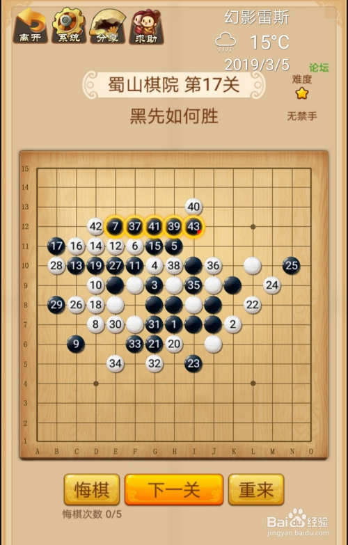 第17关按照下图中黑棋上的数字挨次下棋就能过关。