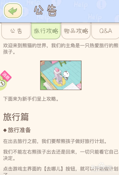 待食物和衣服都做好后,你可以先别离看一下“通知布告、旅游攻略及其它项”的内容提醒和注重事项。