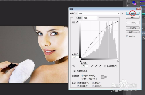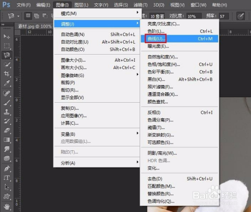 第四步:在菜单栏中选择“图像——调整——曲线”,调整曲线至合适的位置。