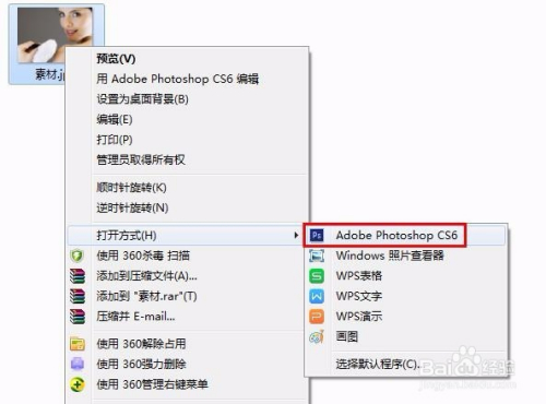 第一步:选中要提亮脸部肤色的图片,单击鼠标右键,在打开体例中选择ps。