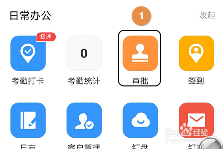 切换到今朝就职的公司今后,我们会在日常办公列表中看到“审批”选项,点击此项就能看到“出差申请”了;