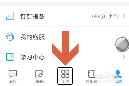 打开钉钉APP今后,我们会在应用首页最下方看到“工作”这一项,点击今后就会展示今朝公司的logo了;