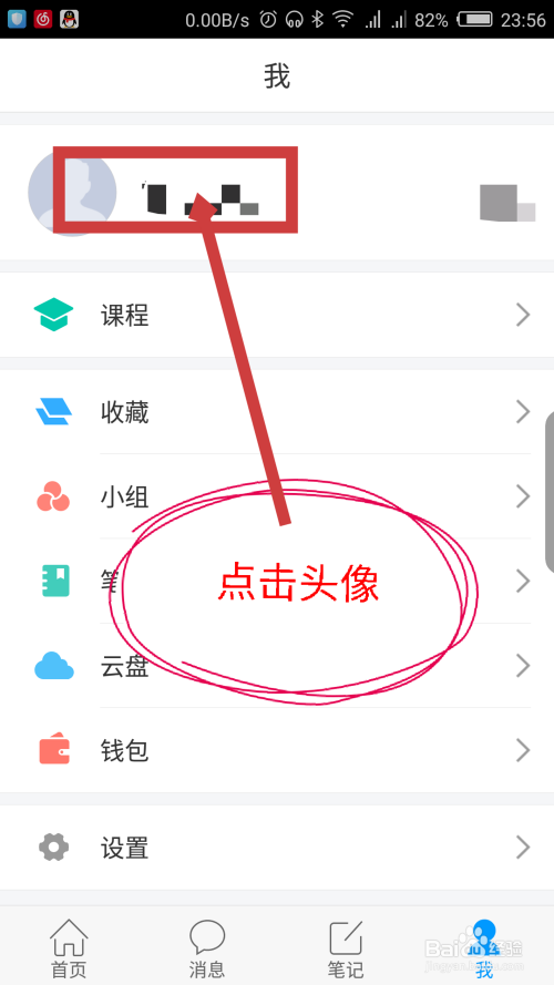 在打开的小我界面,点击上面的显示的头像和昵称选项。如图所示