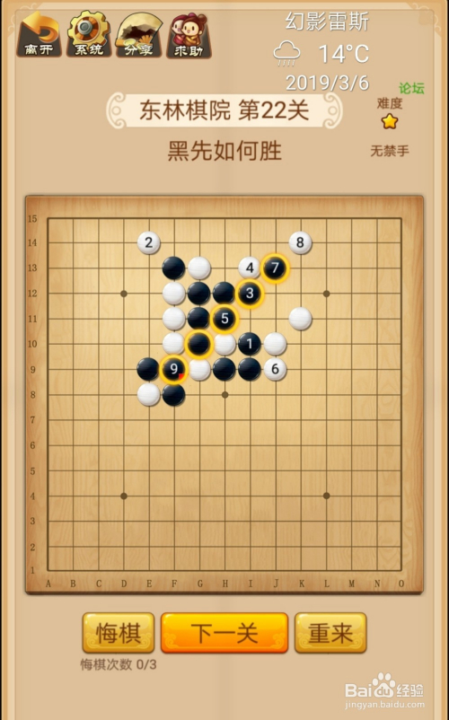 第19关按照下图中黑棋上的数字挨次下棋就能过关。