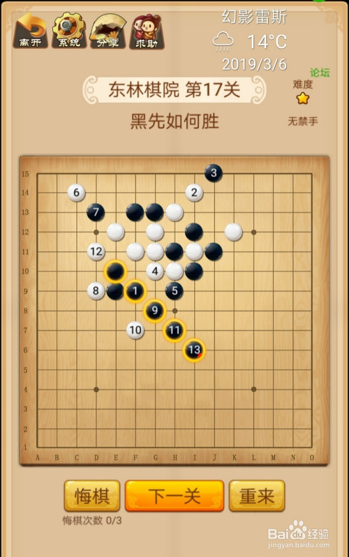 第17关按照下图中黑棋上的数字挨次下棋就能过关。