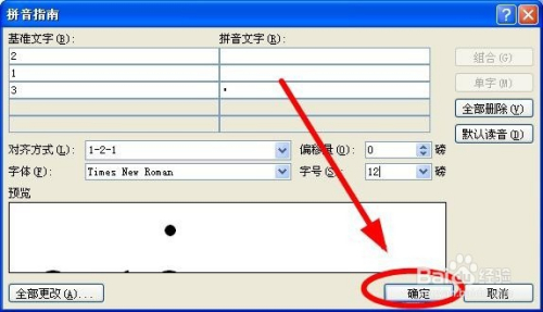 在“拼音指南”对话框,把光标放置在“3”对应的拼音文字后面的位置,点击鼠标右键"粘贴”,或者利用输入法的“特别符号”功能输入“•”到拼音文字的窗口中