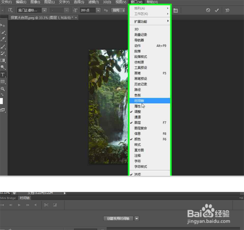 在菜单栏里点击窗口找到时候轴,然后点击建立视频时候轴