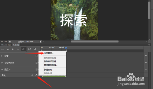 在视频时候轴里音轨红色箭头有音乐播放键右击选择添加本身喜好音频.,