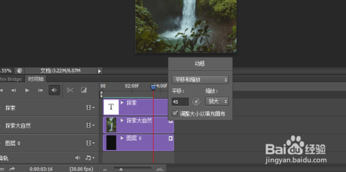 新建图层利用文字东西输入文字,在视频时候轴里点击文件播放选择自界说选择缩放 缩小