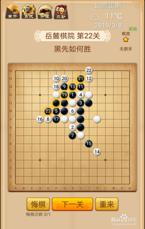第22关按照下图中黑棋上的数字挨次下棋就能过关。