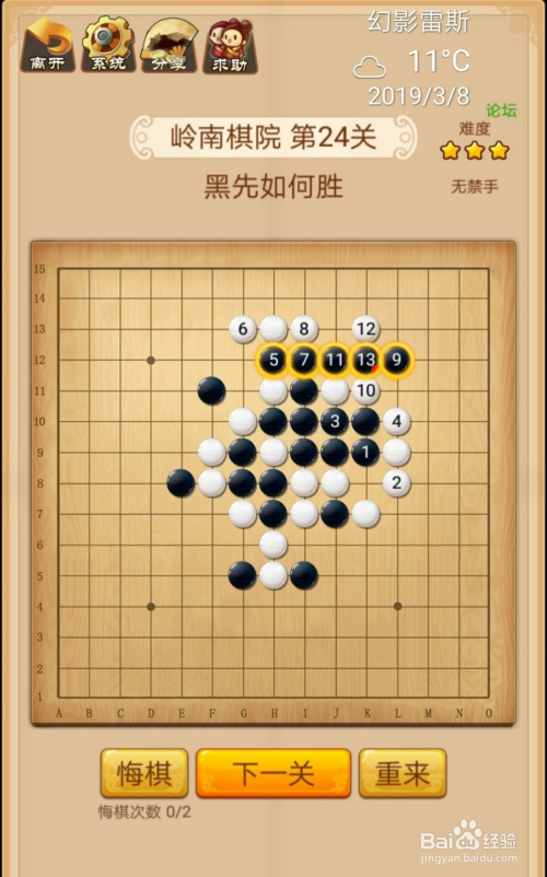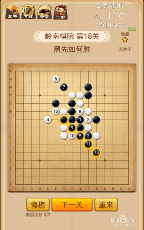 第19关按照下图中黑棋上的数字挨次下棋就能过关。