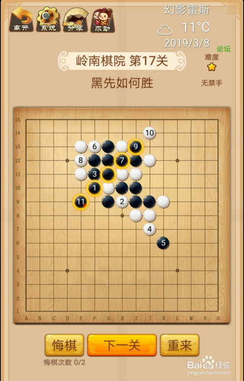第17关按照下图中黑棋上的数字挨次下棋就能过关。