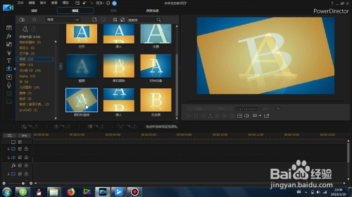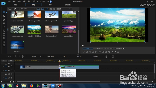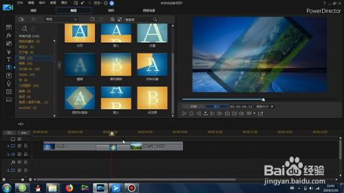 找到这个“威力导演顺时针扭转结果”转场,并拖动到两段素材的中心,形当作默认的转场结果