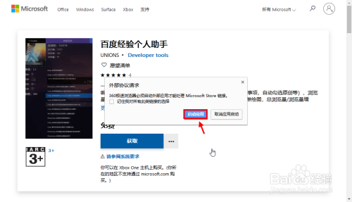 查看应用申明,然后在该应用详情中点击“获取”,然后启动外部程序。