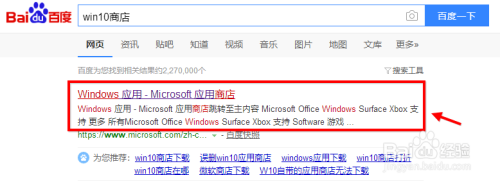 方式2 打开搜刮引擎输入关头词“win10商铺”,在搜刮成果中点击商铺。