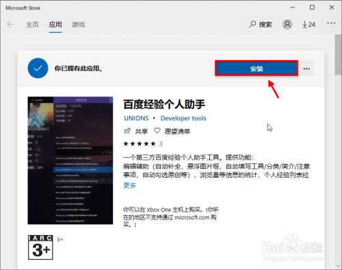 在商铺中搜刮“百度经验小我助手”,查找成果并进入。