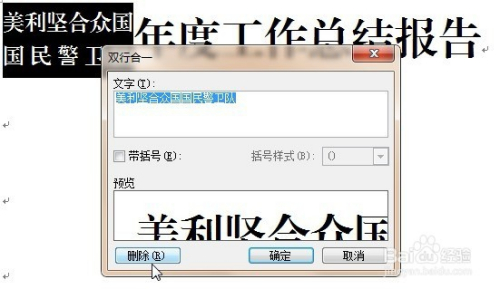 具体步调与设置当作双行合一的步调是一样的,选中被双行合一的文字→直到弹出“双行合一”对话框后,只需点击弹窗左下角的“删除”按钮即可恢复当作正常状况下的文字。